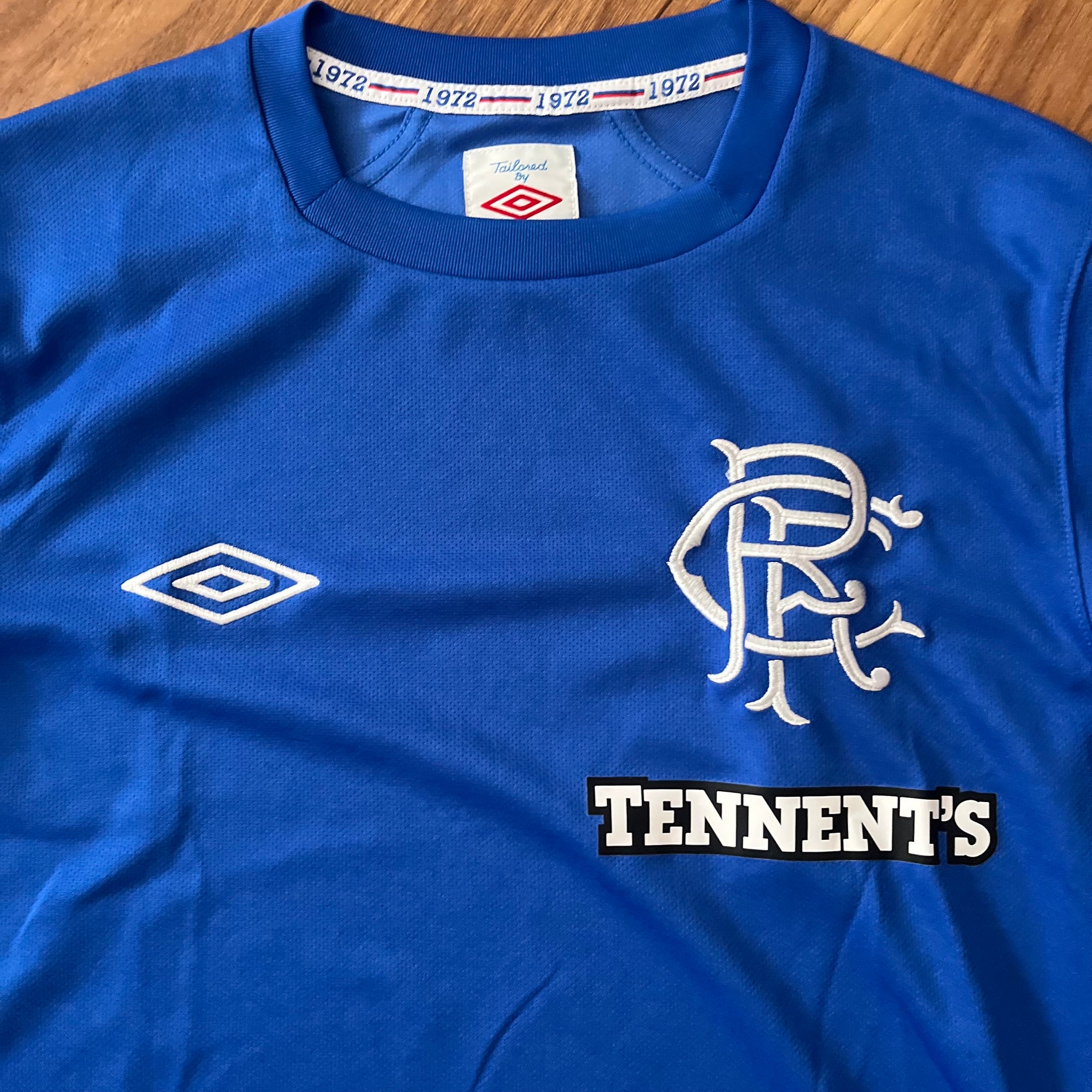 Notes - Home shirt as worn when Rangers finished as champions of the Scottish Third Division, finishing 24 points ahead of second placed Peterhead, after liquidation in the previous season. Also worn when Rangers were knocked out in the quarter finals of the Scottish League Cup, losing 3-0 against Inverness.