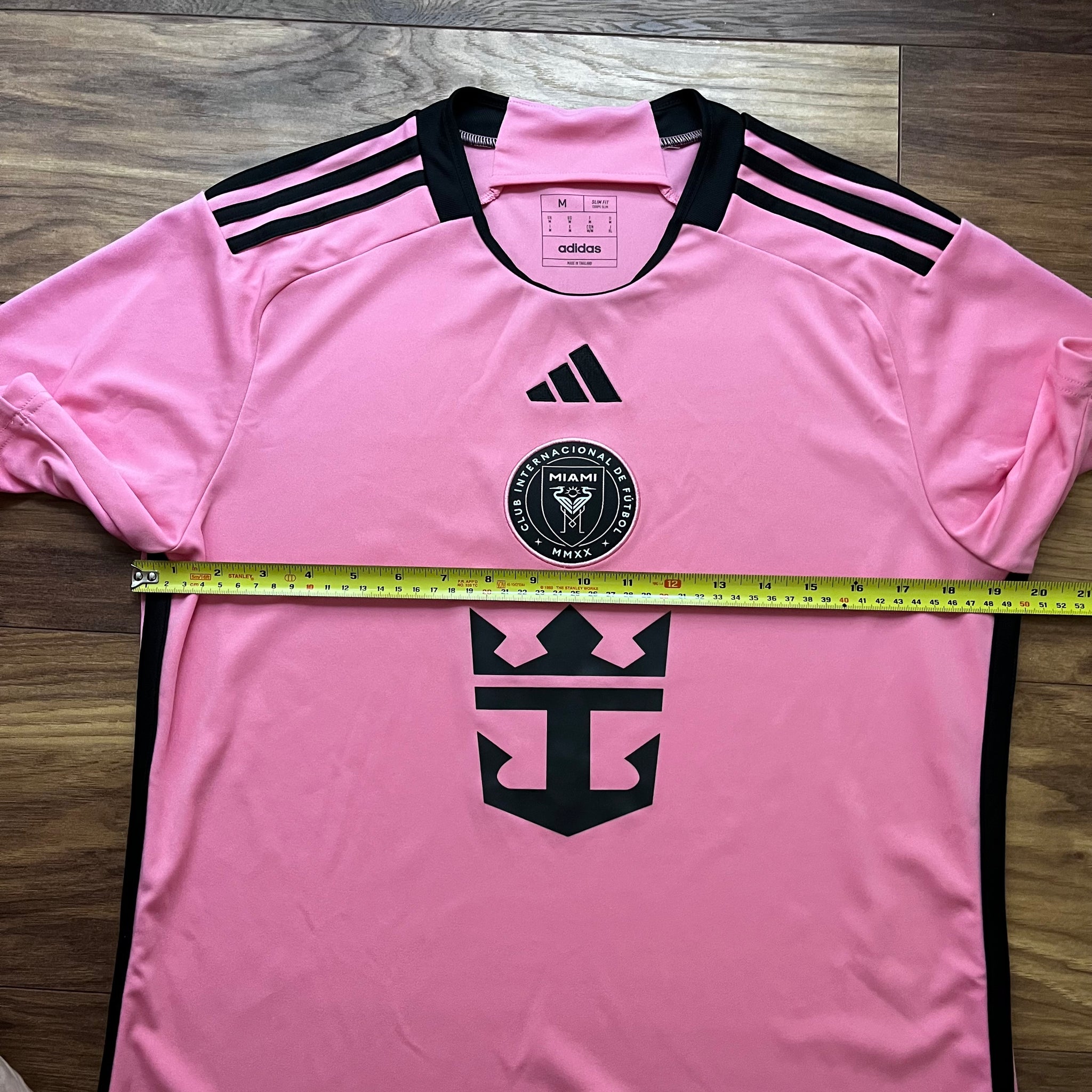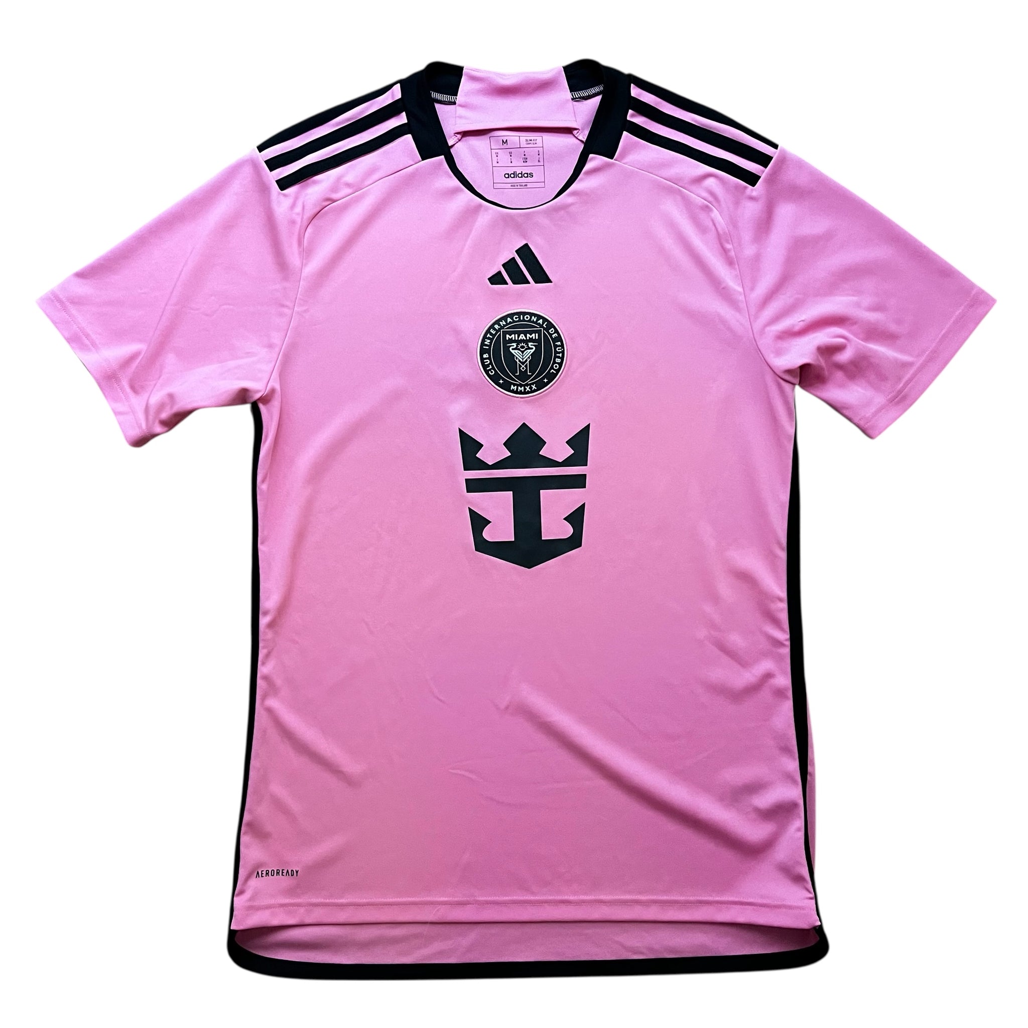 Proud. Passionate. Pink. This adidas Inter Miami CF jersey stands out in the club's signature home colours. Contributing to the clean, classy design, the team badge and 3 Bar Logo move to the centre. AEROREADY wicks moisture to keep football fans comfortable. The back neck signoff displays the team's aspirational motto, "Freedom to Dream."This product is made with 100% recycled materials. By reusing materials that have already been created, we help to reduce waste, reduce reliance on finite resources and reduce the footprint of the products we make.